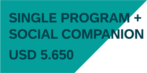 The ticket includes all agenda activities for the partner attendee (see Single program), while the social companion will only have breakfast included, dinner at opening and closing cocktail, the arrival and departure shuttles and accommodation in a twin room at the Llao Llao Bariloche, from August 25th to August 28th. Flight tickets are not included.